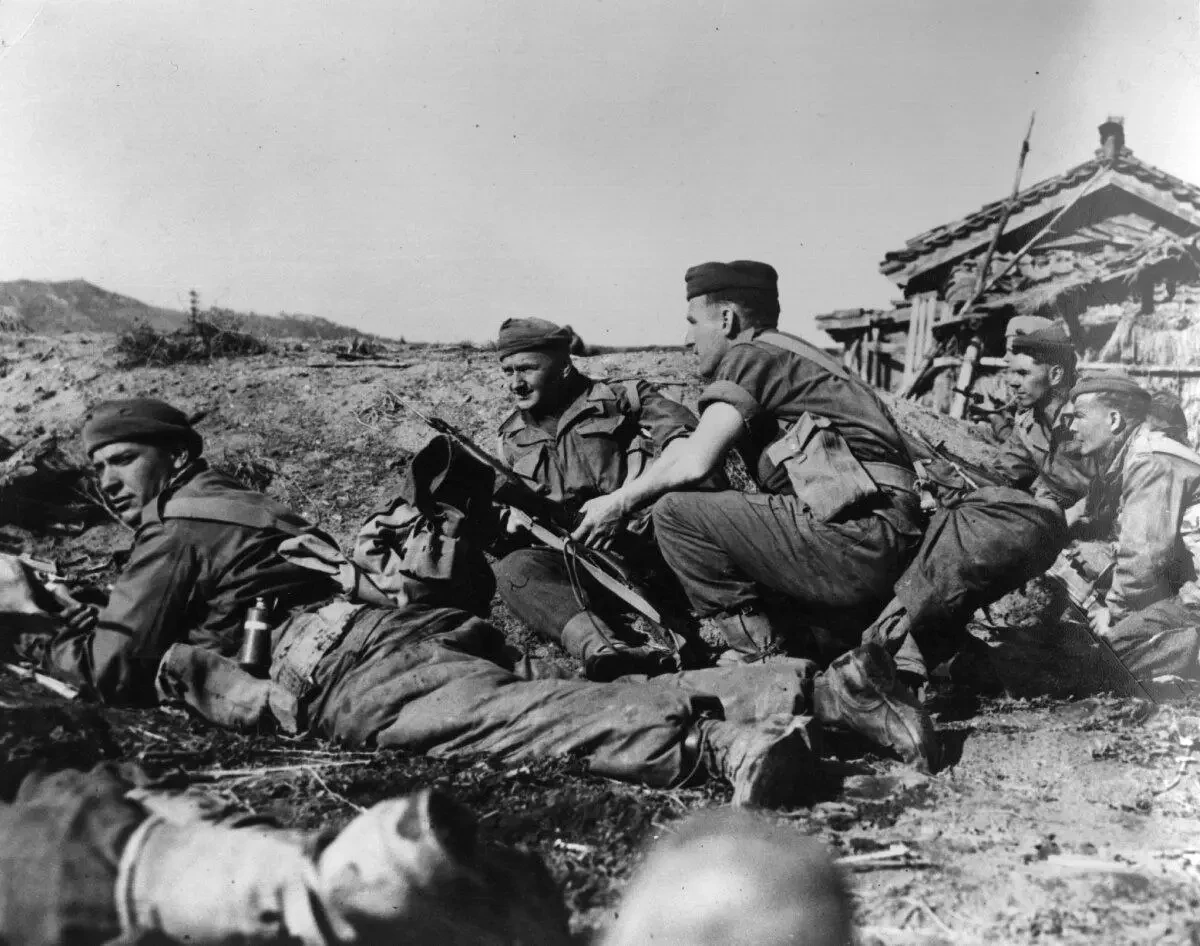 Вечером 26 ноября 1950 года в штабе 9-го корпуса нарастала паника: отовсюду поступали доклады о наступающих китайских частях. Именно там и тогда количество китайских народных добровольцев оценили в два миллиона человек. Прикрыть отступление американцев бросили британскую 27-ю бригаду, находившуюся в резерве. Транспорта не было, и английские солдаты совершили марш-бросок в 22 мили на север. Правда, после первых десяти миль нашлись грузовики, которыми замёрзших и измученных Томми Аткинсов перебросили на рубеж обороны. По дороге англичанам встретился американский джип — на пассажирском сидении сидел мёртвый полковник, рядом лежало ещё два трупа. Вскоре на противоположном конце рисового поля поднялись фигуры в белых маскхалатах и открыли огонь по бойцам миддлсекского полка. Бой продолжался весь день 30 ноября, но испытания, выпавшие на долю англичан, были мелочью на фоне трагедии отступавших американских частей.