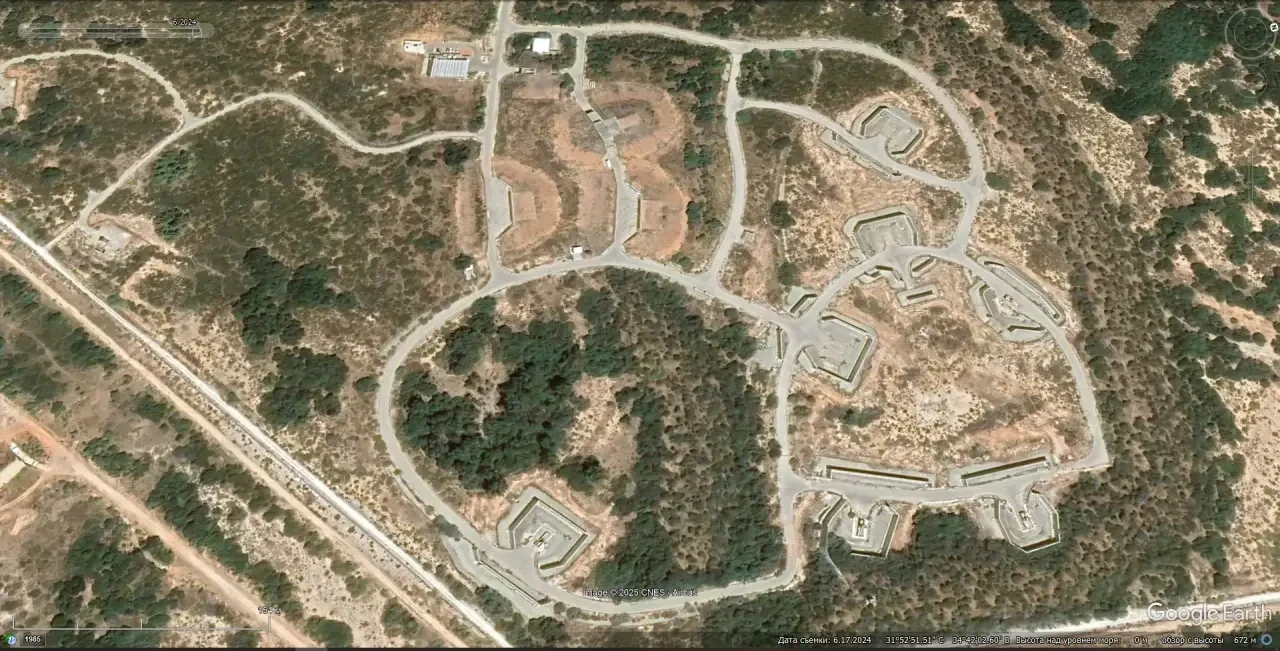 Cпутниковый cнимoк Googlе Еаrth: элементы системы Iron Dome на территории Военного училища противовоздушной обороны Бисла. Снимок сделан в ноябре 2024 года