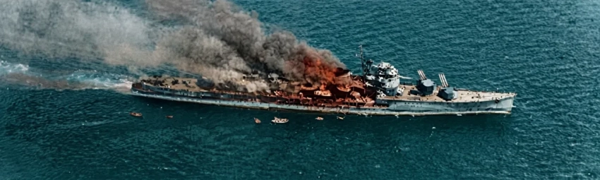 Акидзуки взрывается во время сражения у мыса Энганьо