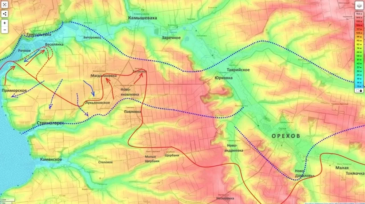 Наши бойцы одновременно работают по двум направлениям. С одной стороны - занимаются окружением Ореховского укрепрайона, взаимодействуя с группировкой «Восток». С другой - осуществляют броски к южным окраинам Запорожья.