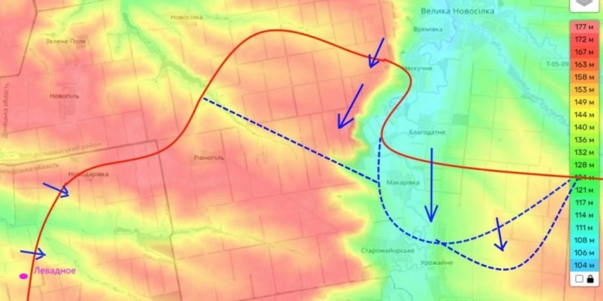 Очевидно, с учетом обстановки (прогноз погоды на сегодня не особо лучше, чем вчера) ВСУ попытаются развить свой успех по направлению к Старомлыновке, и попытаются взять под контроль этот важней узел наших коммуникаций. Источник