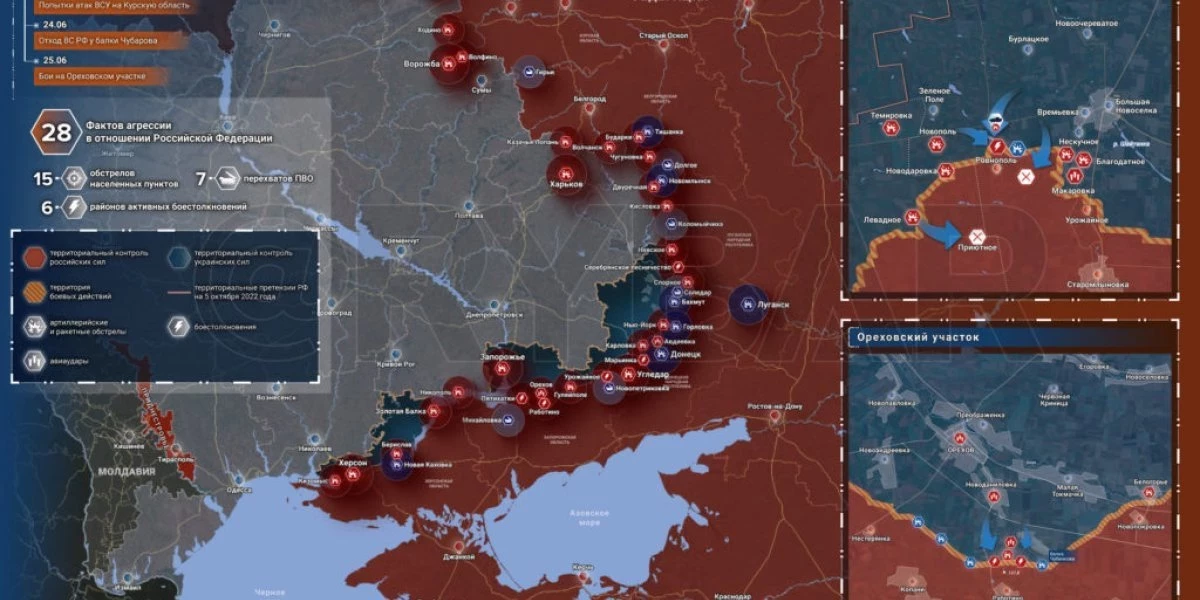 Карта боевых действий на Украине сегодня 27.06.2023 в реальном времени на сейчас