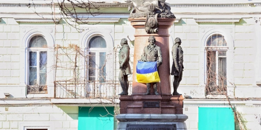 В Одессе оградили деревянным забором и закрыли черной пленкой памятник императрице Екатерине II после серии актов вандализма и на фоне слухов о возможном демонтаже монумента.