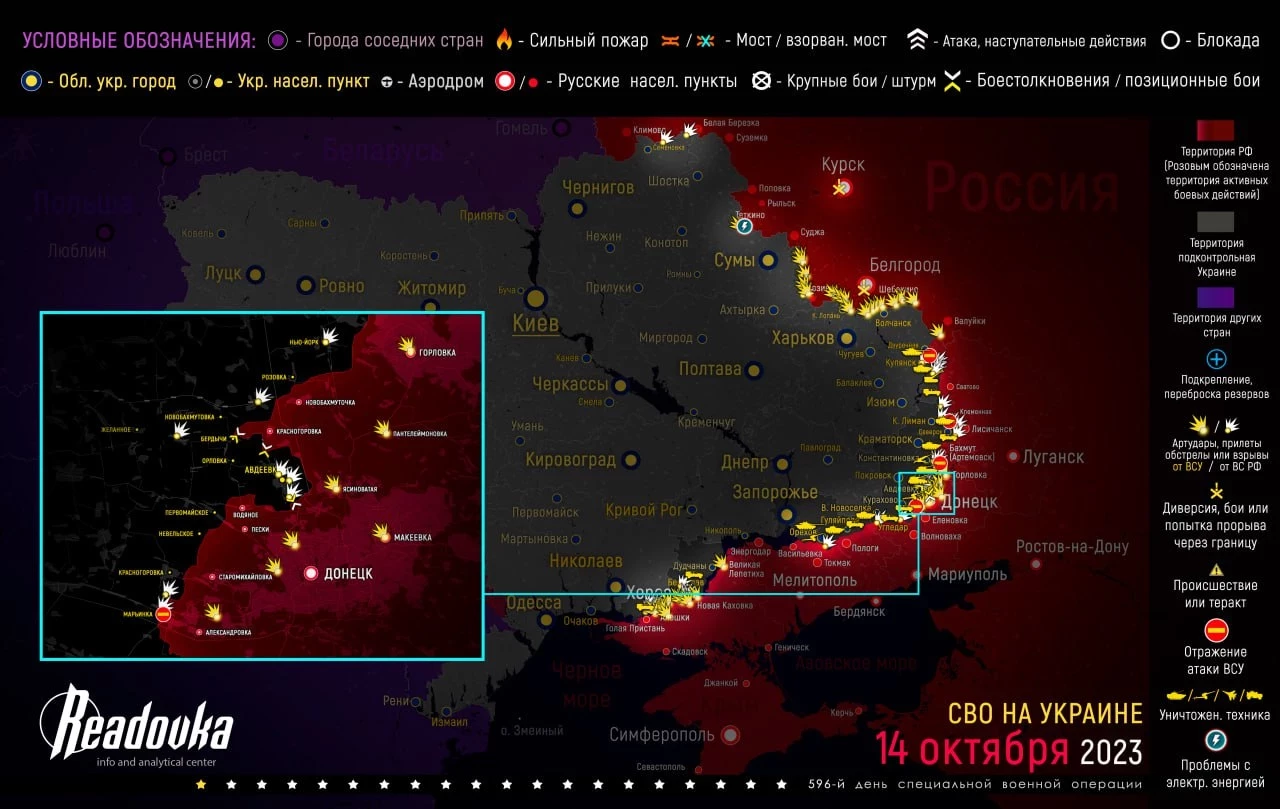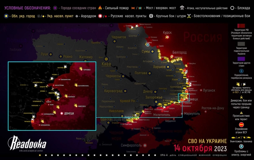 - Обновленная карта военной операции на Украине, военных действий и ситуация на фронтах вечером 14 октября от Телеграм-канала «Readovka