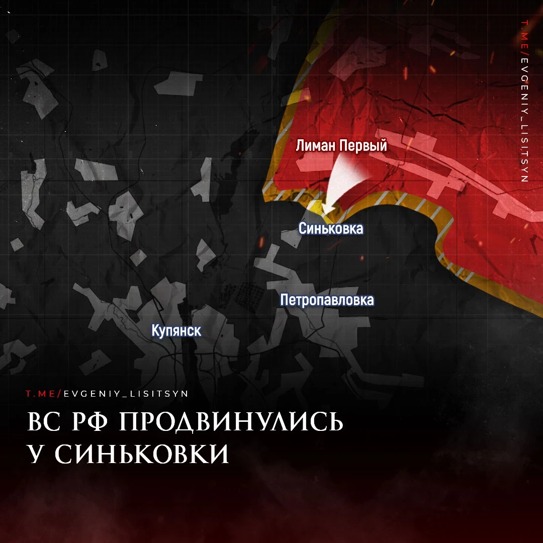 ? Действия на Купянском направлении: Военные действия продолжаются и на Купянском направлении. Украинские войска отошли из поселка Синьковка, что позволило российской армии занять северо-восточные окраины данного населенного пункта.