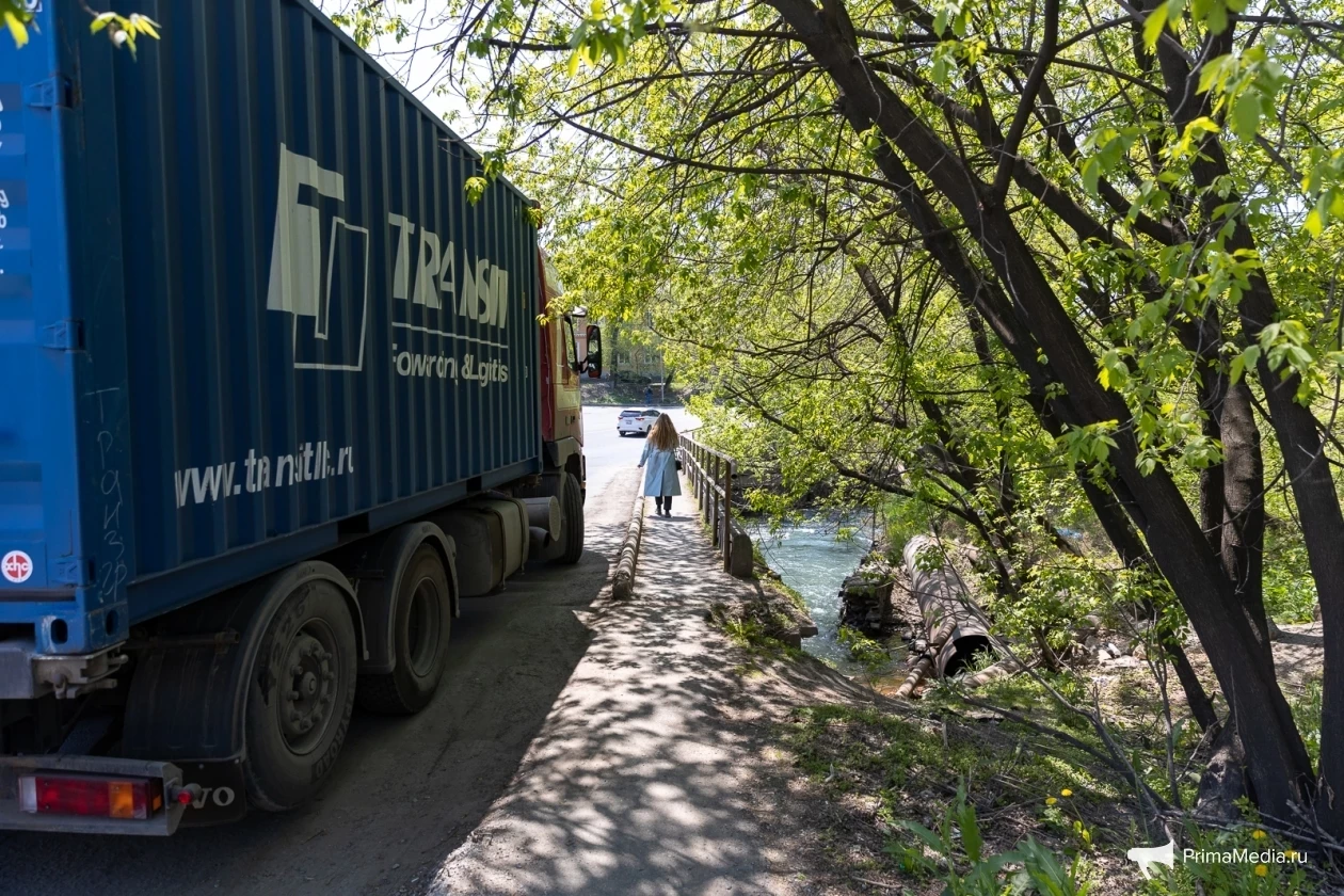 Пройдя через трамвайные пути, нужно вновь пройти по стёршейся разметке перехода, а после по “бездорожью” и паллетам возле аллерго-респираторного центра на Спортивной, 10 добраться до максимально узкого тротуара между ограждением и дорогой. В этой “пешеходной зоне” если гуляешь с ребёнком в коляске, то придётся идти по дороге навстречу машинам. Но, когда закончится ограждение, тротуарная зона снова появится и дальше, по дороге, станет облагороженной зеленью.