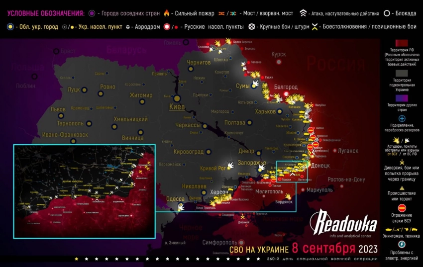 - Карта военных действий и ситуация на фронтах вечером 8 сентября от Телеграм-канала «Readovka