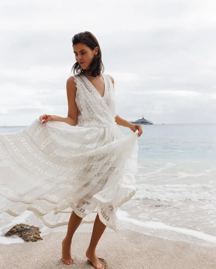 На фото Надежда позирует в белом платье и перчатках Chanel на пикнике на пляже, занимается йогой, читает книгу и загорает в бикини. "Остров радости", — подписала кадры невеста бизнес-партнёра Романа Абрамовича.
