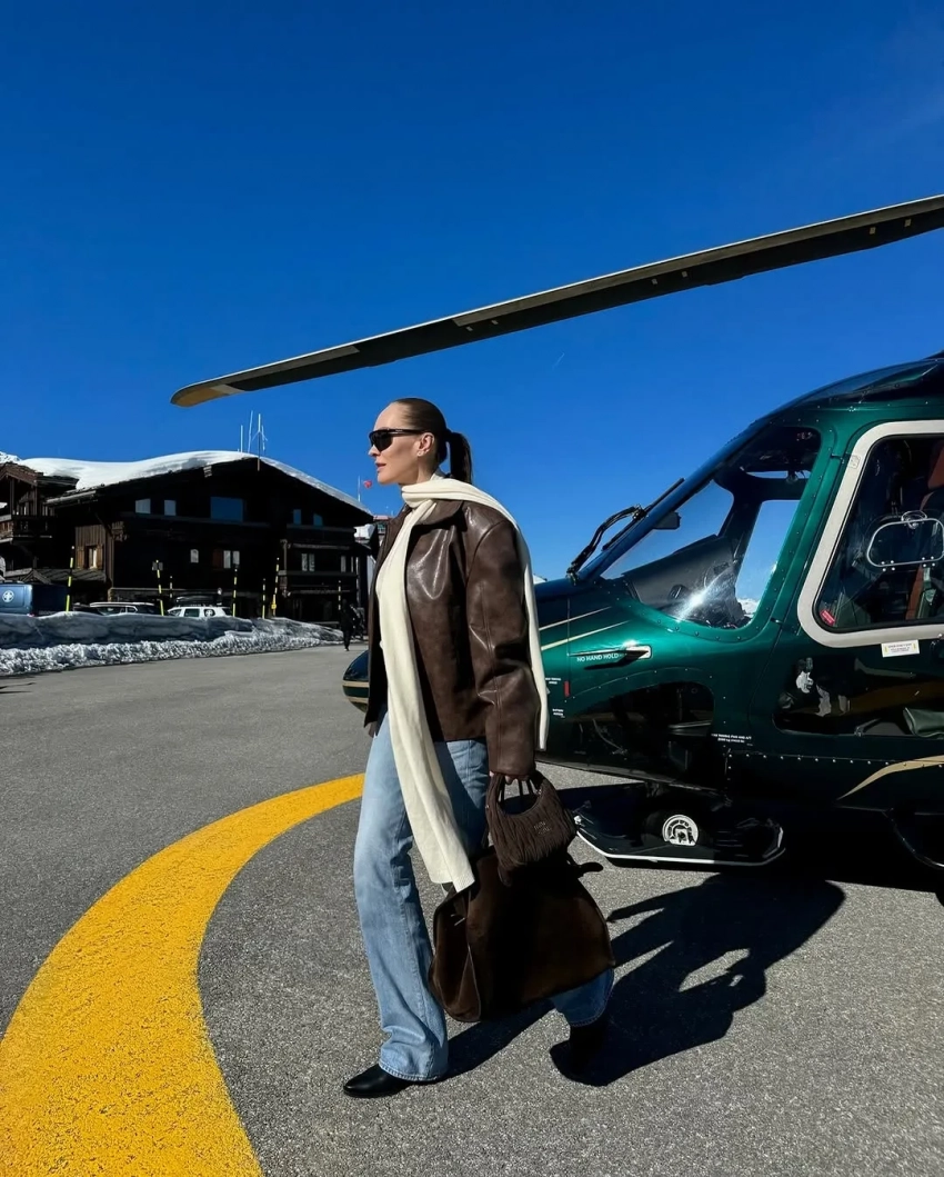 На фото 42-летняя Давыдова позирует на фоне гор в комбинезоне Skims и меховой шляпе, летает на вертолёте, отдыхает в местном ресторане в шубе и балетках Miu Miu, а также выгуливает свою сумку Hermes из крокодиловой кожи с серым костюмом и ботильонами Maison Margiela. "Самое сложное для меня на семейных каникулах — это объяснить мужу, зачем мне такое количество чемоданов, и выдержать его взгляд. А остальное уж как по маслу!" — написала Наталья.