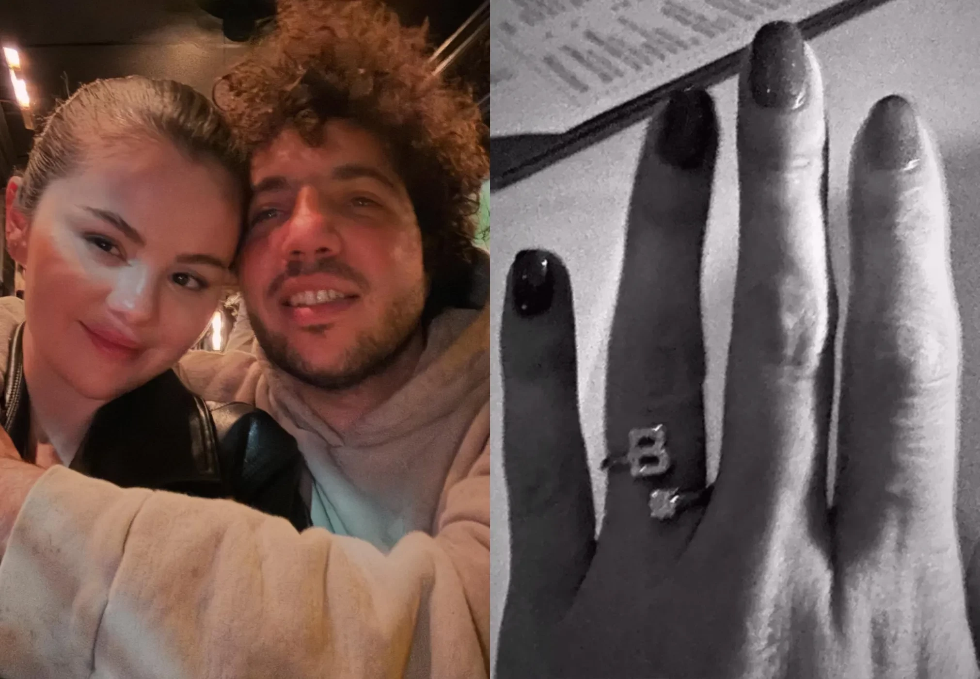 Украшение, созданное брендом Jacquie Aiche, было продано в рамках кампании "12 дней по-настоящему редких вещей", которая была запущена с целью продажи личных "сентиментальных" вещей артистки её поклонникам в преддверии выхода их совместного с Бланко альбома I Said I Love You First. Кольцо с бриллиантом в форме буквы "B", фото которого Гомес опубликовала в инстаграме* в декабре 2023 года, когда публично подтвердила свои отношения с Бенни, было изготовлено на заказ и имело уникальный дизайн. По данным СМИ, в нём использовались драгоценные камни общим весом 0,44 карата, а первоначальная стоимость составляла 3250 долларов.