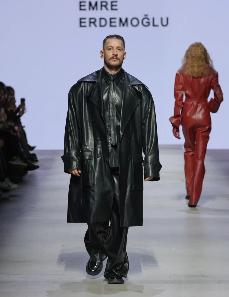 Турецкий бренд Emre Erdemo lu, не первый раз принимающий участие в Московской неделе моды, презентовал новую коллекцию, главным материалом для которой стала кожа во всевозможных проявлениях — от более привычных плащей до менее ожидаемых брючных костюмов. А открывал и закрывал показ знаменитый турецкий актер Ураз Кайгылароглу, известный в России по сериалам «Дочь посла» и «Спрячь меня».