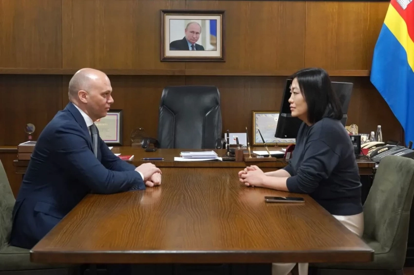 Татьяна Ким и Алексей Беспрозванных на встрече с предпринимателями