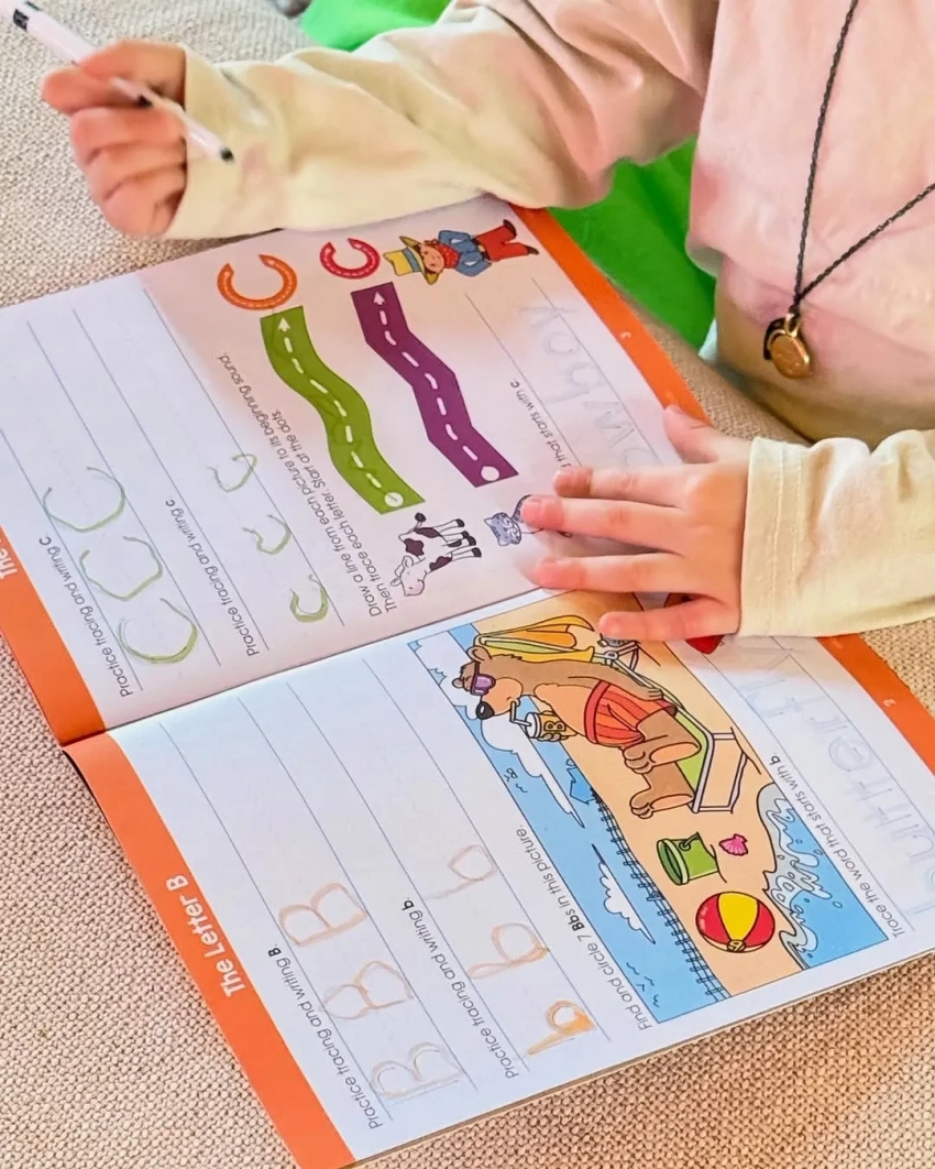 На одном из фото дочь 29-летней том-модели перепрыгивает через лесной ручей, на другом выполняет задание в рабочей тетради. Ещё на одном снимке показан процесс украшения пасхальных яиц.