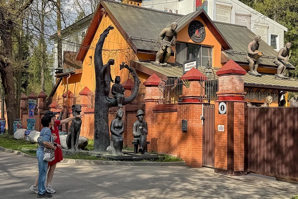 Этот дом видно издалека - даже не зная точного адреса, мимо ни за что не пройдешь. У ворот милуются несколько бронзовых парочек. Одна из них даже на ветви литого дерева забралась. И за всем этим наблюдают огромные благородные борзые. Как живые! На постаментах под собаками выбиты авторские клейма: «Зураб Церетели».