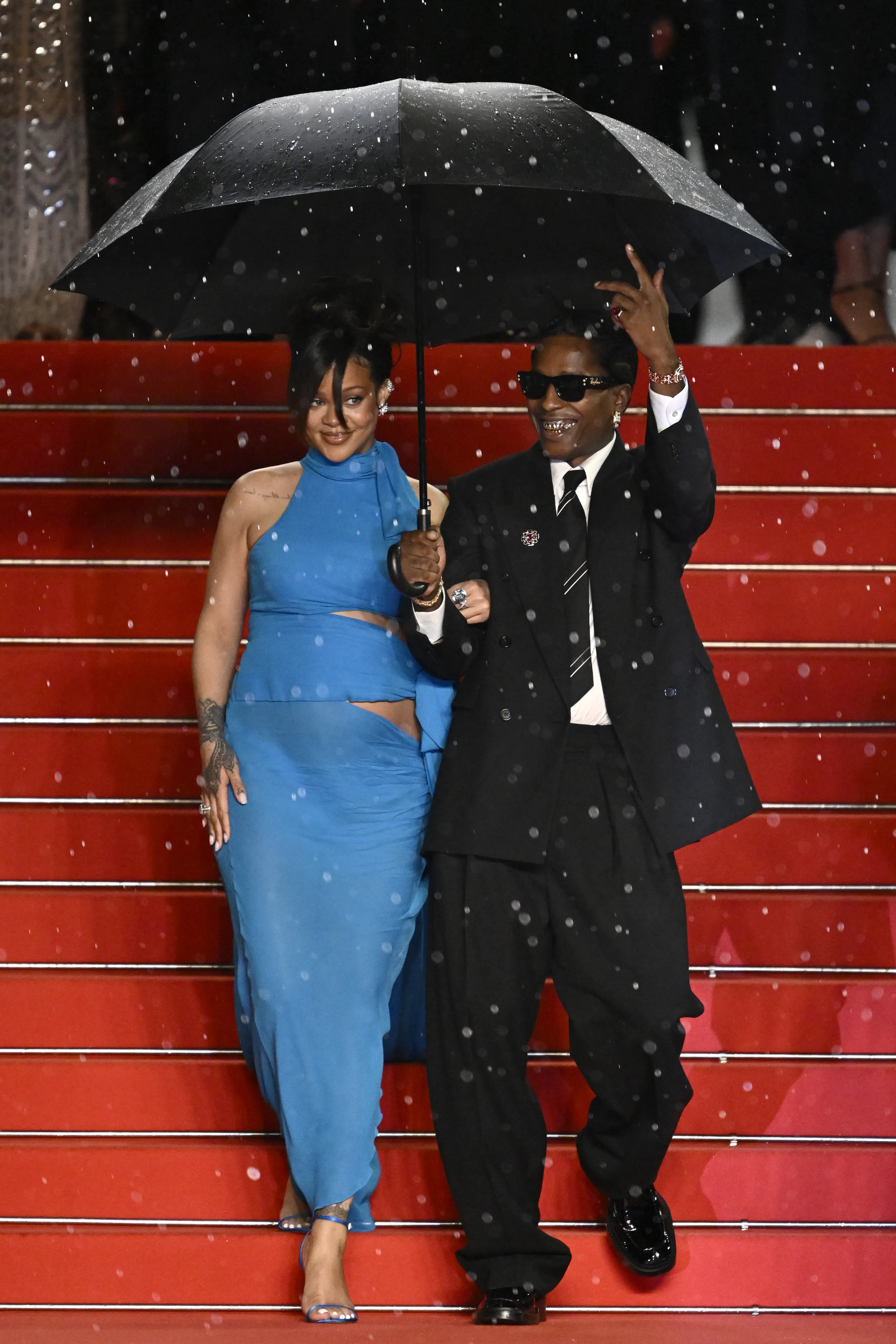 A$AP Rocky, который сыграл в картине одну из главных ролей, появился на мероприятии в чёрном костюме Saint Laurent, дополнив образ солнцезащитными очками Ray-Ban Wayfarer, а также аксессуарами от Bvlgari. Рианна, чьё появление стало сюрпризом, выбрала для выхода голубое шифоновое платье с вырезами от Alaïa, подчеркивающее округлившийся живот, и туфли на шпильке в тон. Во время ухода пары с показа начался дождь, и они на радость фотографам эффектно позировали под зонтом.