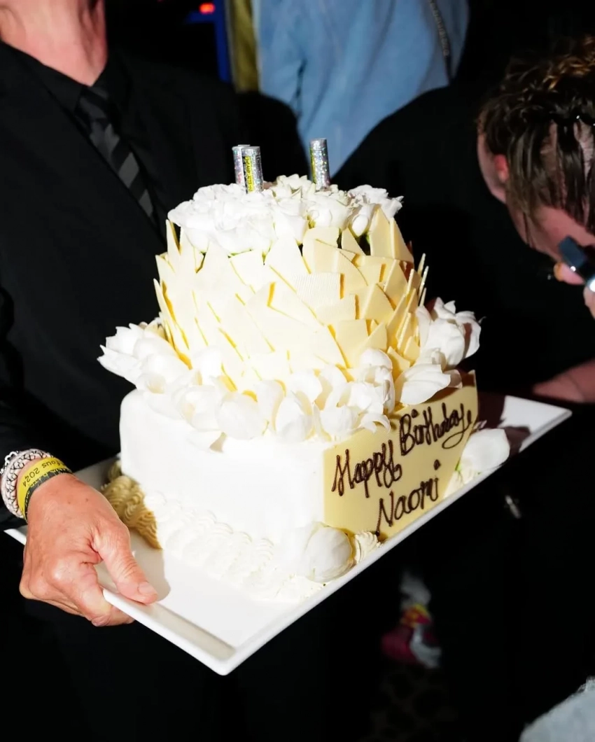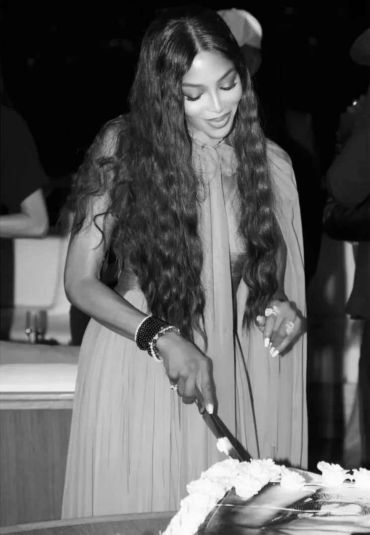 Судя по фото, у Кэмпбелл было две вечеринки. На одной она появилась бирюзовом платье Dolce & Gabbana, среди гостей были София Вергара, Эдриан Броуди и сын Арнольда Шварценеггера — звезда "Белого лотоса" Патрик Шварценеггер. Рядом с именинницей также находился мультимиллионер из Саудовской Аравии Мохаммед Аль Турки, с которым ей приписывают отношения. Торт для Наоми украсила её культовая фотография для Interview Magazine 1991 года.