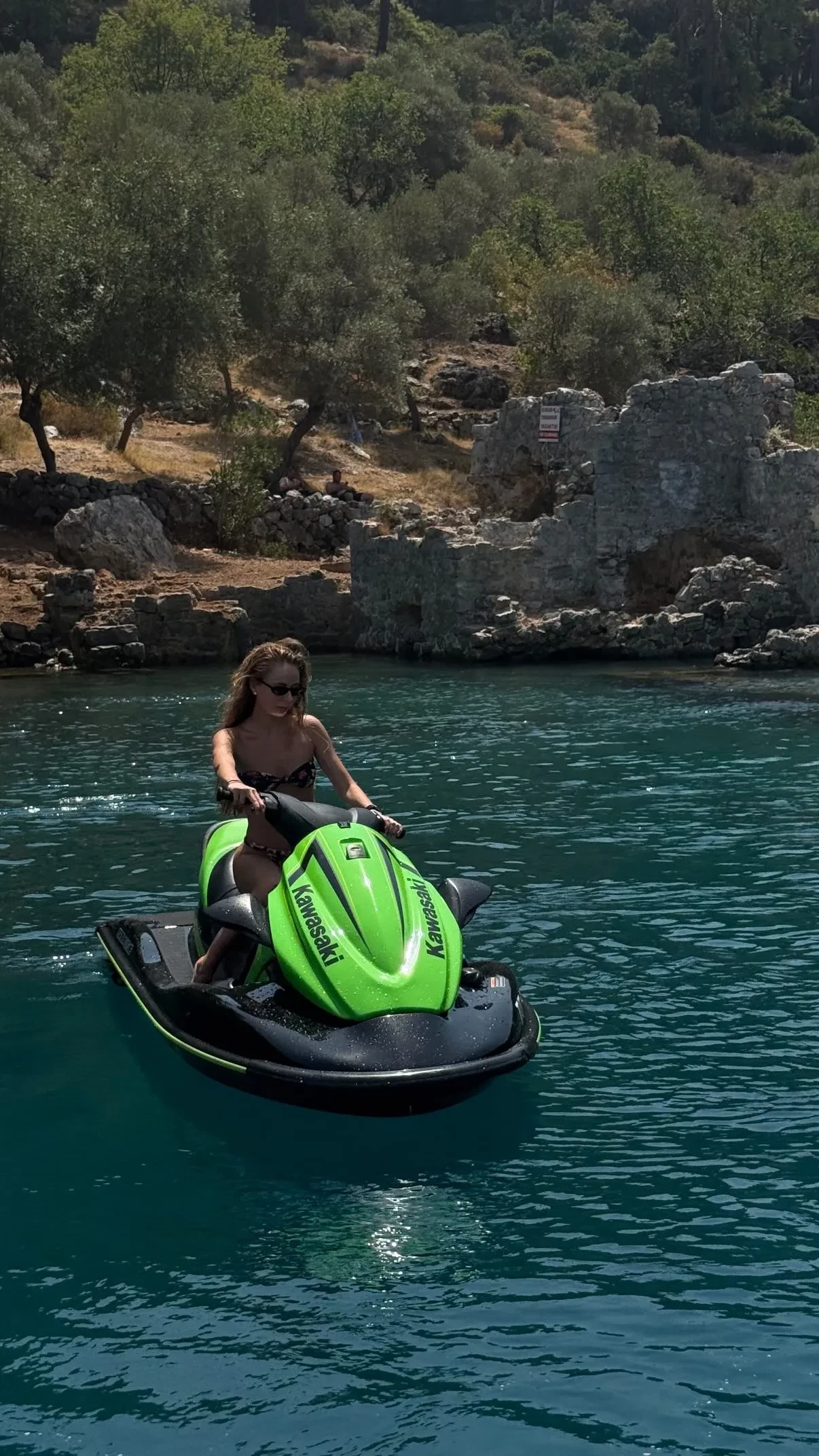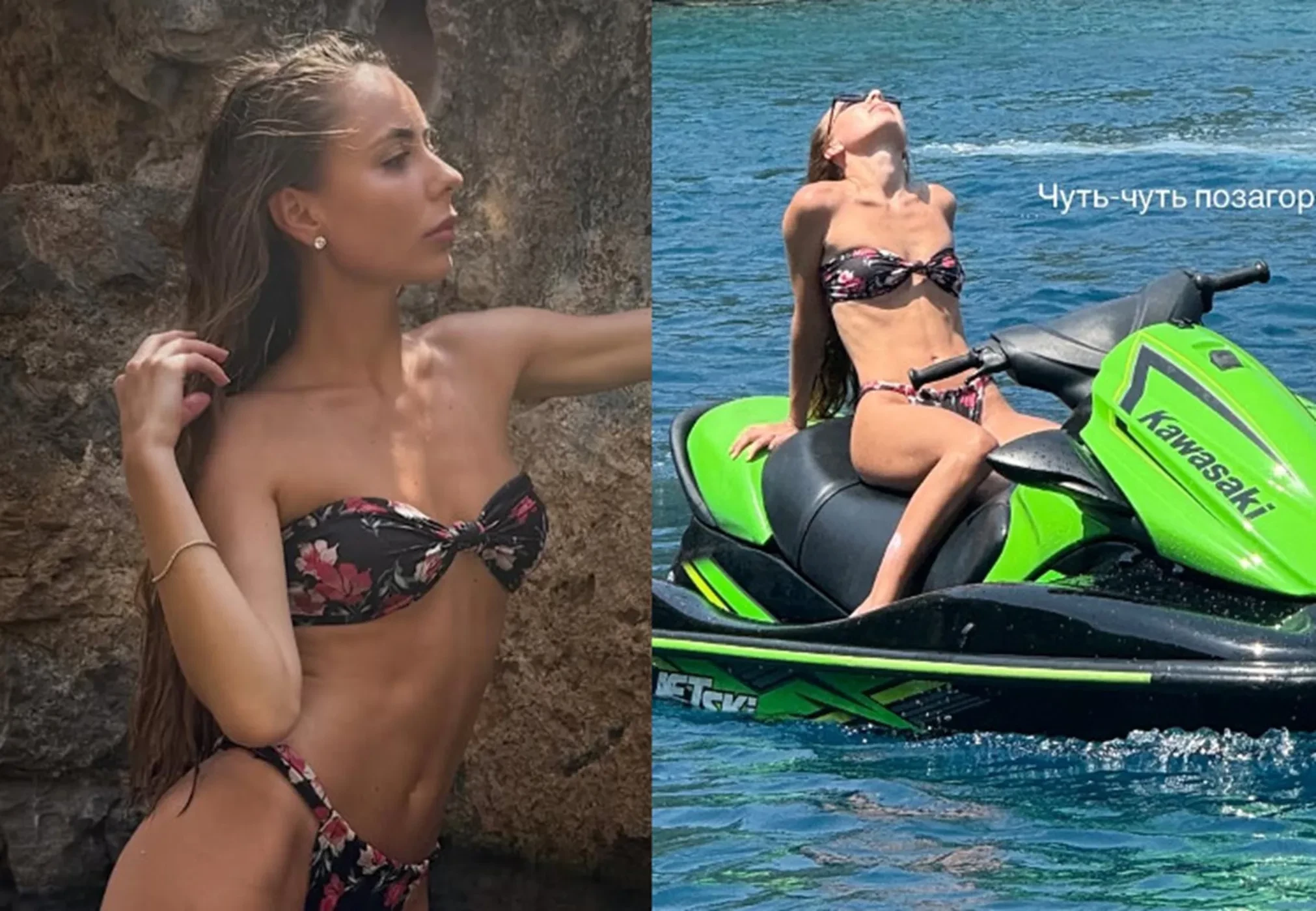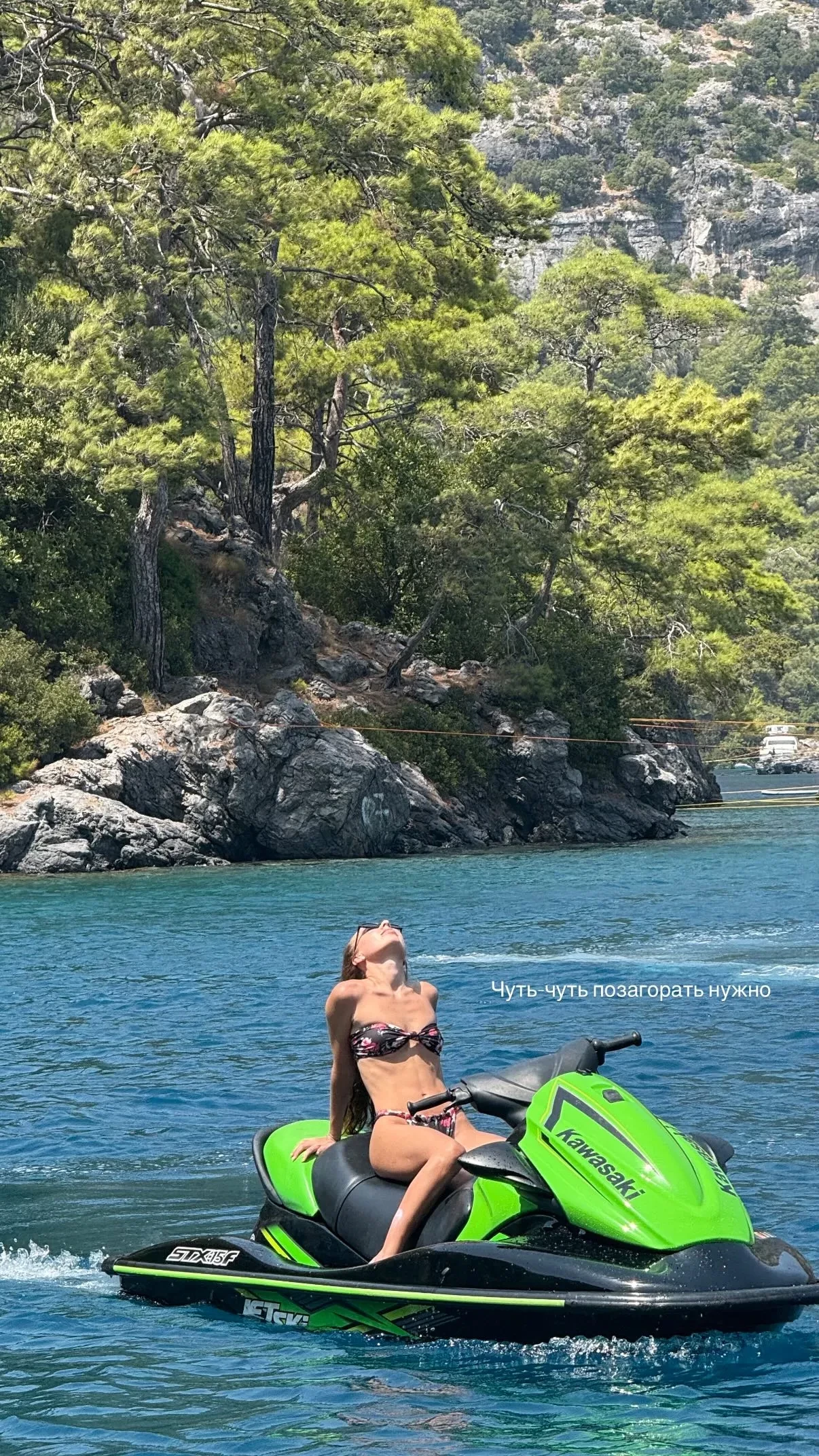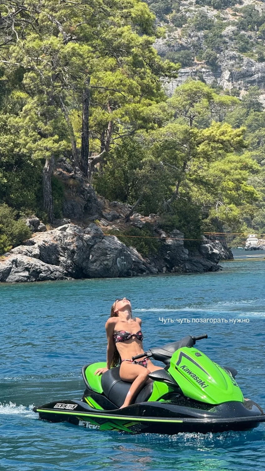 Она попозировала в бикини, стоя в воде на фоне скал, и показала, как катается на водном мотоцикле. Пост лайкнула сводная сестра Александры Елизавета Пескова.