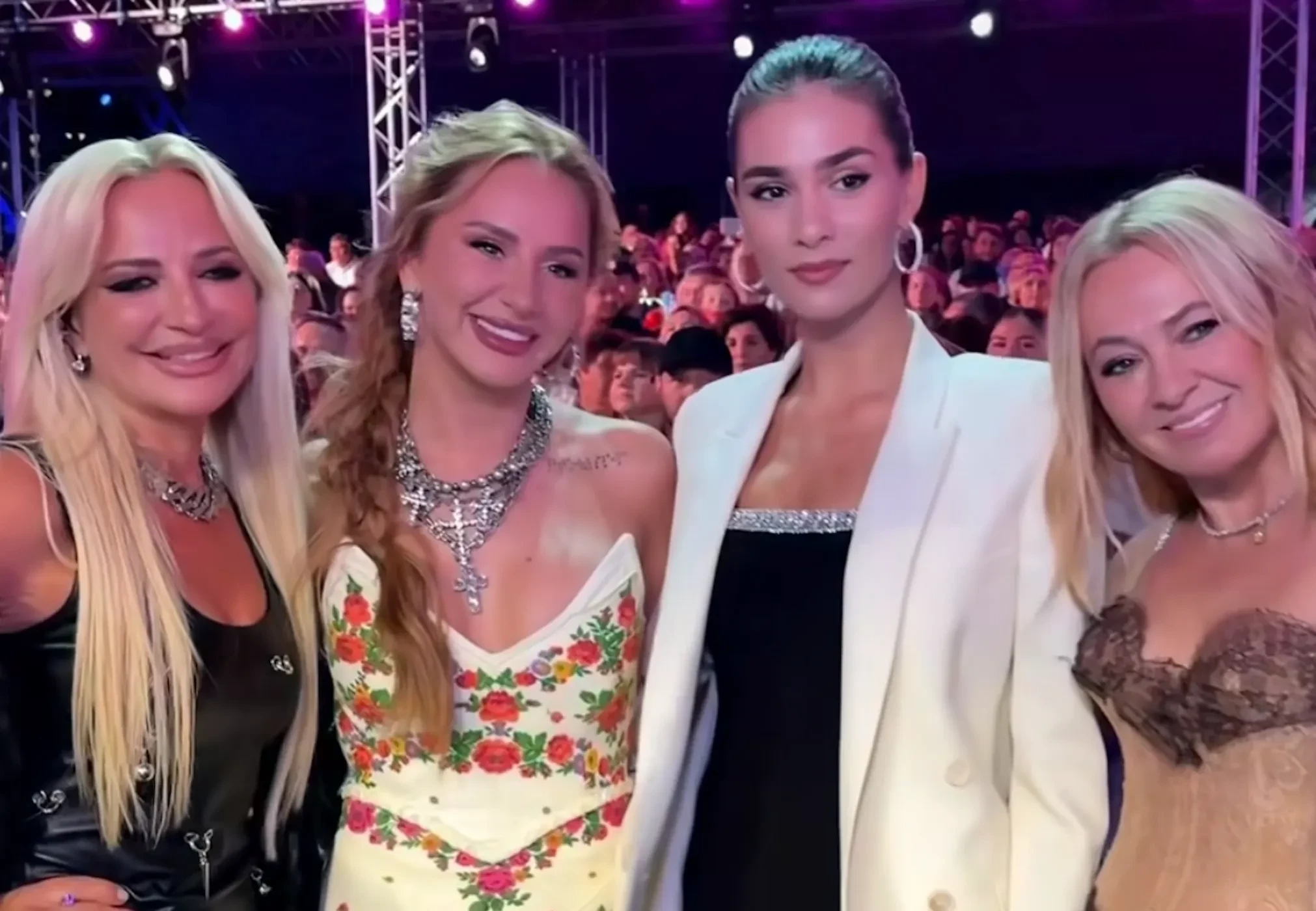 В Казани продолжается конкурс молодых исполнителей "Новая волна — 2025". На фестивале, среди множества селебрити, замечены также Виктория Шелягова, Яна Рудковская, жена хоккеиста Александра Овечкина Анастасия Шубская и певица Анна Asti, которые вместе посетили концерт в честь 30-летия группы "Иванушки International".
