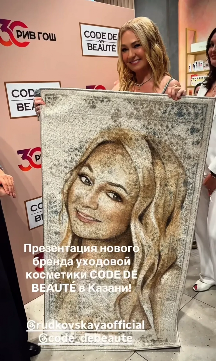 Анастасия ШубскаяВ Казани Яна Рудковская также посетила мероприятие в одном из торговых центров, где продюсеру вручили ковер с её портретом.