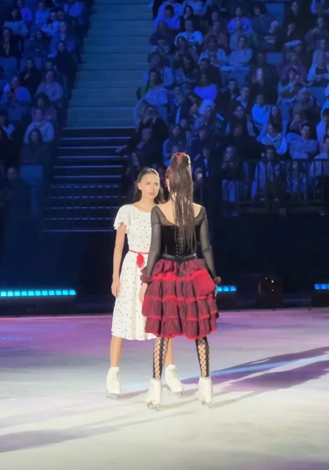 Алина Загитова и Евгения МедведеваОб их примирении стало известно после того, как Алина Загитова впервые за долгое время опубликовала совместное фото с 26-летней Евгенией Медведевой в своём инстаграме*. Так она подтвердила, что Медведева примет участие в её новом ледовом шоу. До этого Загитова пришла на YouTube-шоу Евгении и дала ей откровенное интервью. Позже Загитова отметила, что сделать первый шаг ей было непросто, но она понимала его важность. Кроме того, спортсменка подчеркнула, что все прошлые обиды остались позади.