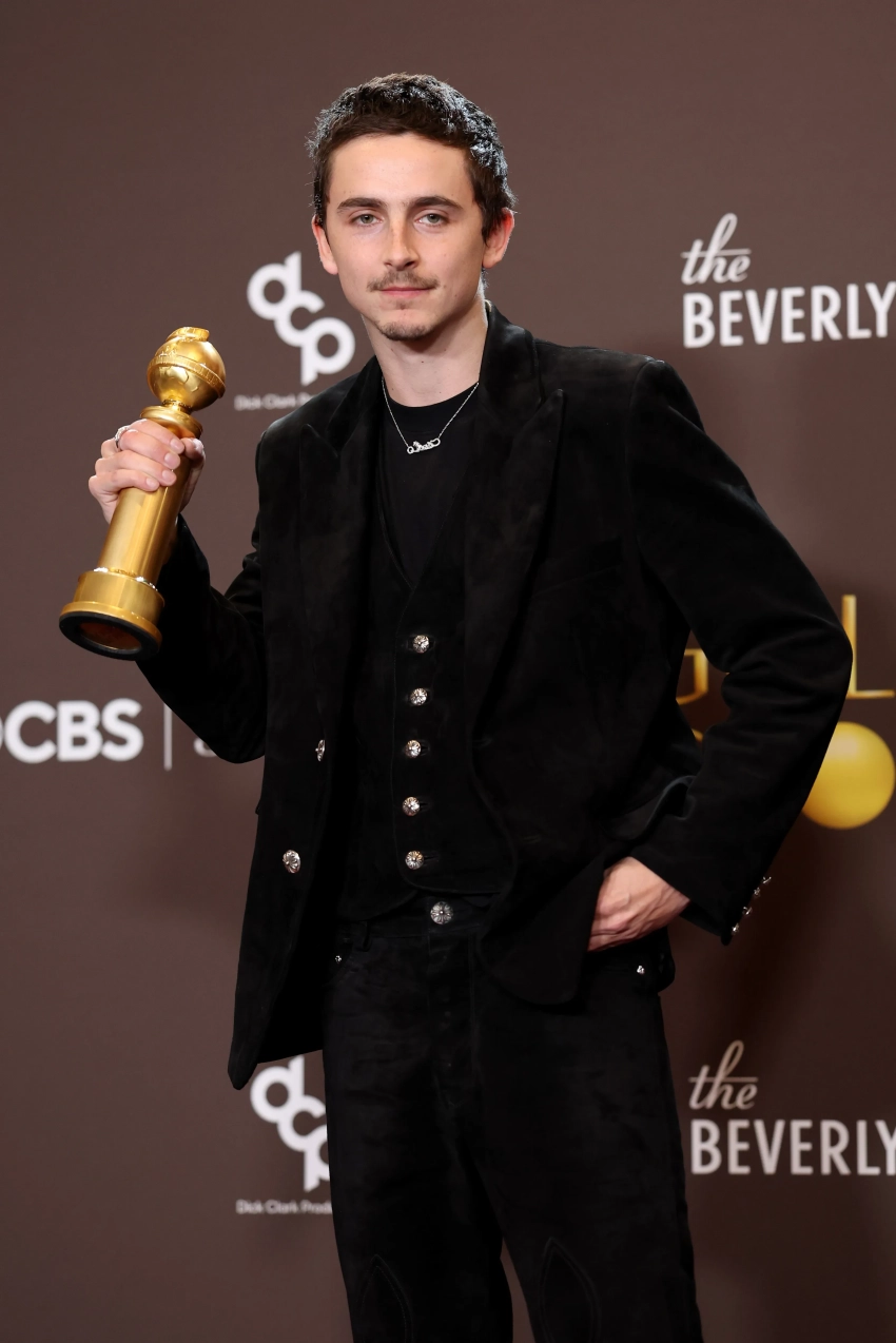 "Моим родителям и моей партнёрше — я вас люблю. Большое вам спасибо", — сказал Тимоти, забирая статуэтку в номинации "Лучший актёр мюзикла или комедии". По возвращении в зал он поцеловал возлюбленную.