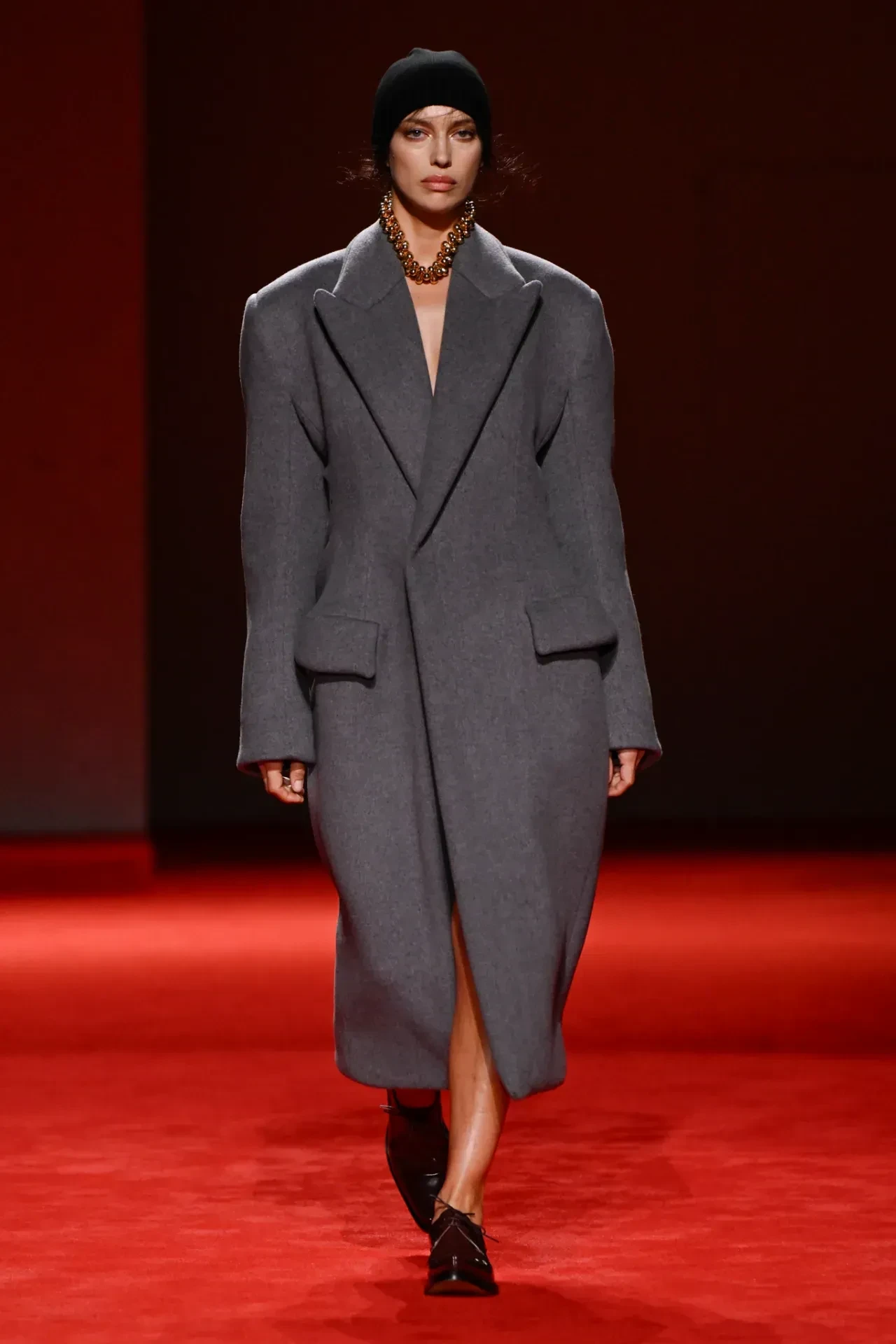 Неделя моды в Милане: Ирина Шейк вышла на подиум в пальто на "голое тело"