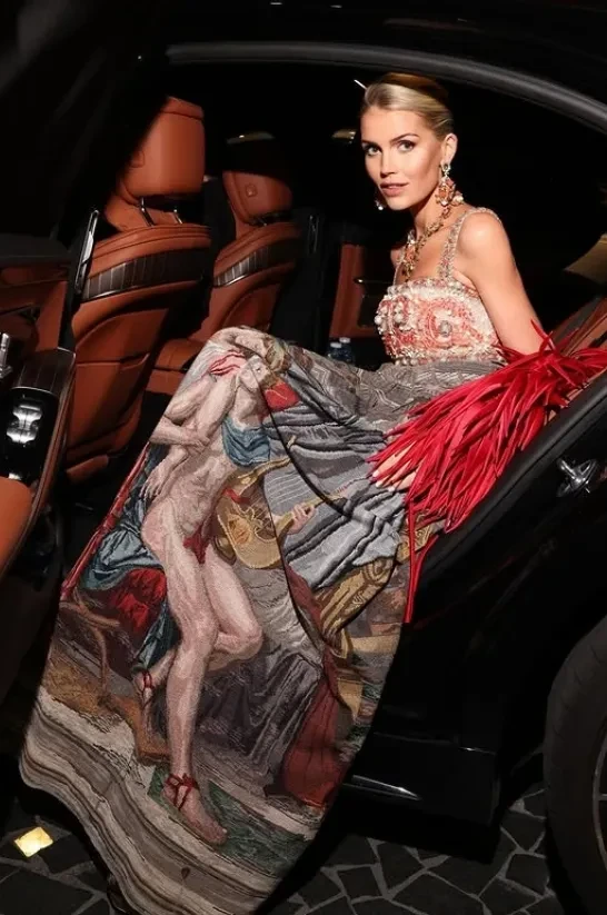 Племянница покойной принцессы Дианы Китти Спенсер посетила Бал роз в Монако — благотворительный вечер в поддержку фонда Грейс Келли. На мероприятии 35-летняя Китти Спенсер появилась в расшитом кораллами, кристаллами и жемчугом платье Dolce & Gabbana: дизайн платья и принт на юбке, как рассказала Китти в соцсетях, был вдохновлён картиной Жака-Луи Давида 1789 года "Любовь Париса и Елены".