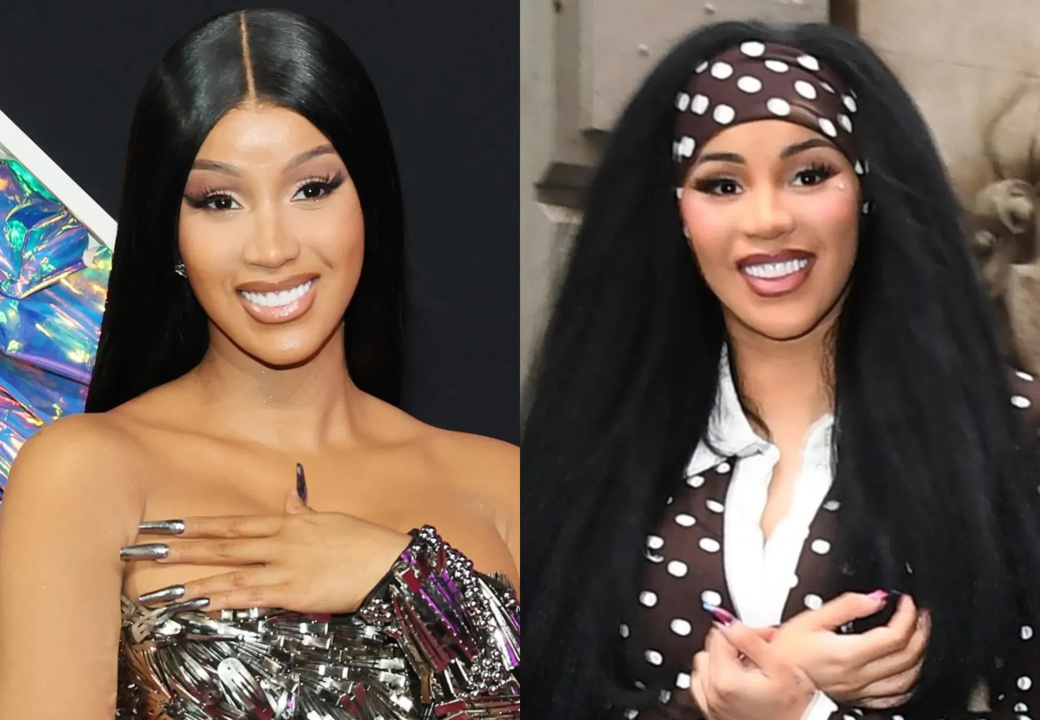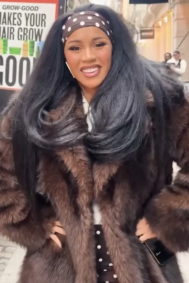 33-летнюю рэпершу засняли в Нью-Йорке перед презентацией её новой линии средств по уходу за волосами. Для выхода в свет она выбрала коричневое платье в горошек от французского бренда Rowen Rose, дополнив наряд похожей повязкой для волос и остроносыми туфлями на шпильке. Однако поклонники обратили внимание на изменения во внешности Карди: многие отметили, что артистка стала выглядеть моложе и "миловидней", предположив, что она сделала подтяжку лица. При этом некоторые посчитали, что Би выглядит "отёкшей", и сделали вывод, что она злоупотребляет ботоксом.