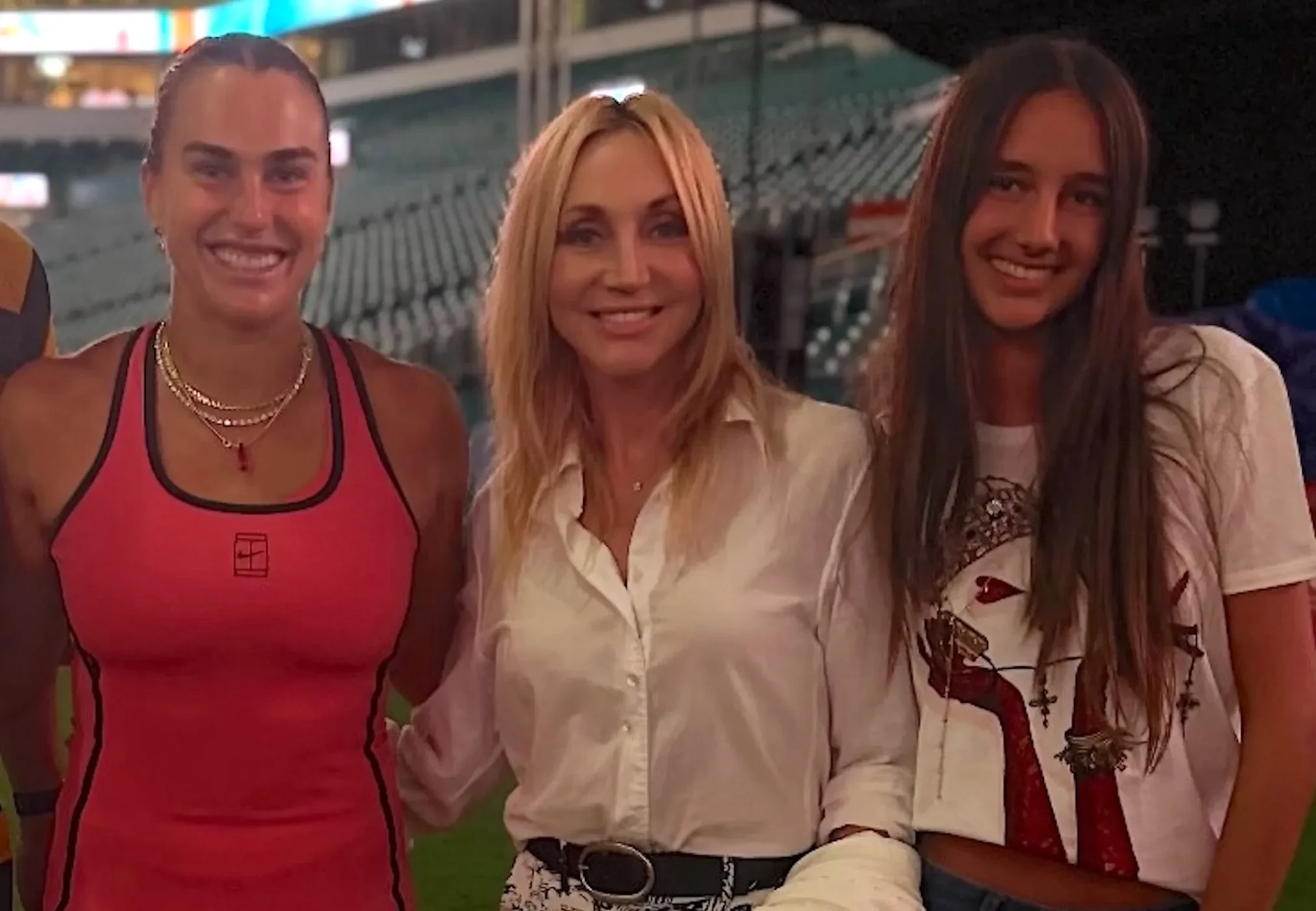 Кристина Орбакайте с мужем и дочерью встретились с Ариной Соболенко на турнире в Майами