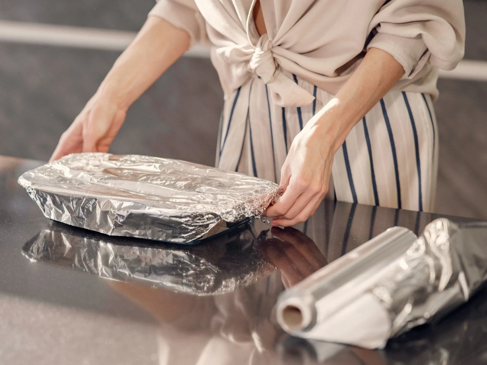 По словам Лары Тиро, состав материала с обеих сторон абсолютно одинаков. Это подтверждают и специалисты компании Reynolds Brands — одного из крупнейших производителей фольги. На официальном сайте бренда указано, что и стандартную, и сверхпрочную фольгу можно использовать любой стороной.