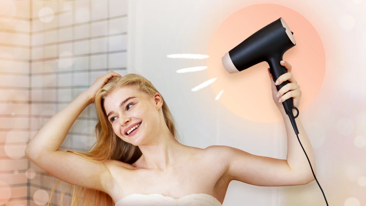 В финале направь холодный воздух на корни — так укладка зафиксируется.