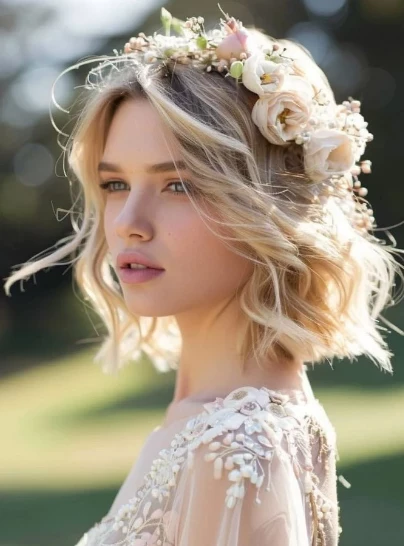 Живые или искусственные цветы — один из самых романтичных трендов, который особенно выигрышно смотрится на коротких стрижках вроде пикси или боба. Они придают образу легкость, свежесть и индивидуальность.