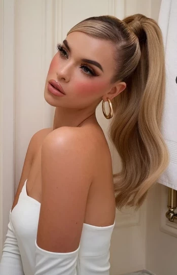 Один из самых эффектных вариантов — гладкий или объемный высокий хвост. Он создает четкие линии, приподнимает черты лица и выглядит суперсовременно.