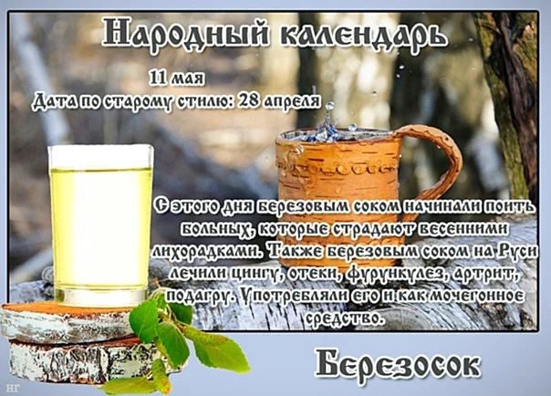 Само название праздника говорит само за себя: 11 мая посвящён сбору берёзового сока — традиции, уходящей корнями в глубокую древность. Сок из берёзы ценили за его целебные свойства и считали настоящим даром природы. Особой силой, по поверьям, обладал сок, собранный с верхних ветвей дерева, хотя добраться до них было непросто.